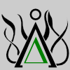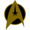 Description: A stylized lightning bolt in gold, on a black circular gear.