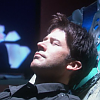 Description: Lorne, sitting in the captain's chair of the Orion.